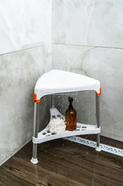 A fürdőszobai ülőkék termékcsaládot úgy tervezték, hogy növeljék a kényelmet, a biztonságot és a függetlenséget mosakodás és fürdőszobai használat közben. Az ülőke elsősorban az idősek vagy a mozgáskorlátozottak számára nyújt segítséget. A vízelvezető nyílással ellátott háromszög alakú ülőke prémium minőségű műanyagból készült, kényelmesen illeszkedik a sarkokba, és stabil még egyenetlen padlófelületeken is. Az ülőkék tökéletes megoldást jelentenek mindazok számára, akik biztonságosan szeretnék élvezni a fürdőszobában végzett tevékenységeket.