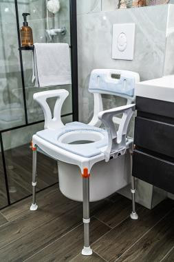 Ez a multifunkciós 3 az 1-ben WC és szék azoknak készült, akik kényelmet és praktikumot is keresnek zuhanyozás vagy személyes higiéniai rutinok elvégzése közben. KING Szoba WC és zuhanyszék 3in1 háttámlával és karfával remek alternatívát kínál a szoba WC-kel, zuhanyszékekkel, magasított WC-ülőkékkel szemben is. Tökéletes mindazok számára, akiknek támogatásra van szükségük WC-használat, zuhanyozás vagy személyes ápolási rutinok elvégzése közben, a maximális stabilitás biztosítása mellett.