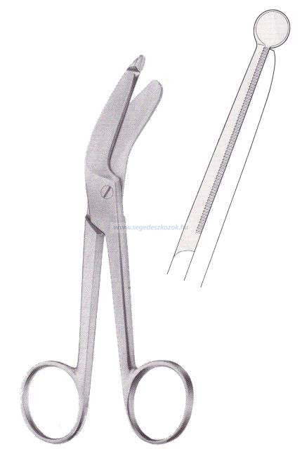 Rozsdamentes acélból, Sterilizálható 18 cm-es olló kötszer eltávolítására. Kiképzése védi a beteget a sérüléstől